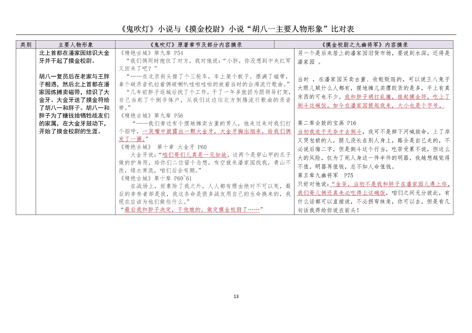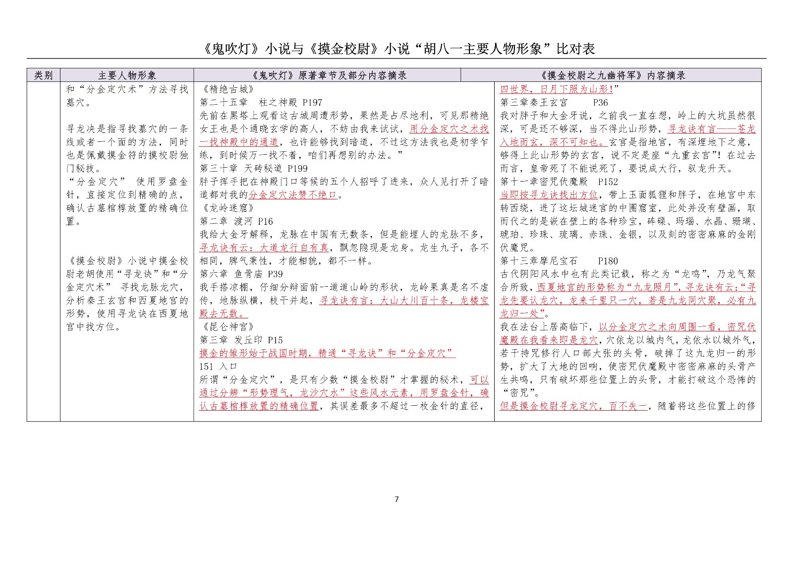 《鬼吹灯》小说与《摸金校尉》小说 “胡八一主要人物形象”比对表↓