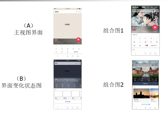 这相当于采用“摆积木”的方式拼合得出组合图2,用组合图1和组合图2,组合图1跟主界面进行比对,组合图2跟界面状态变化图进行比对。