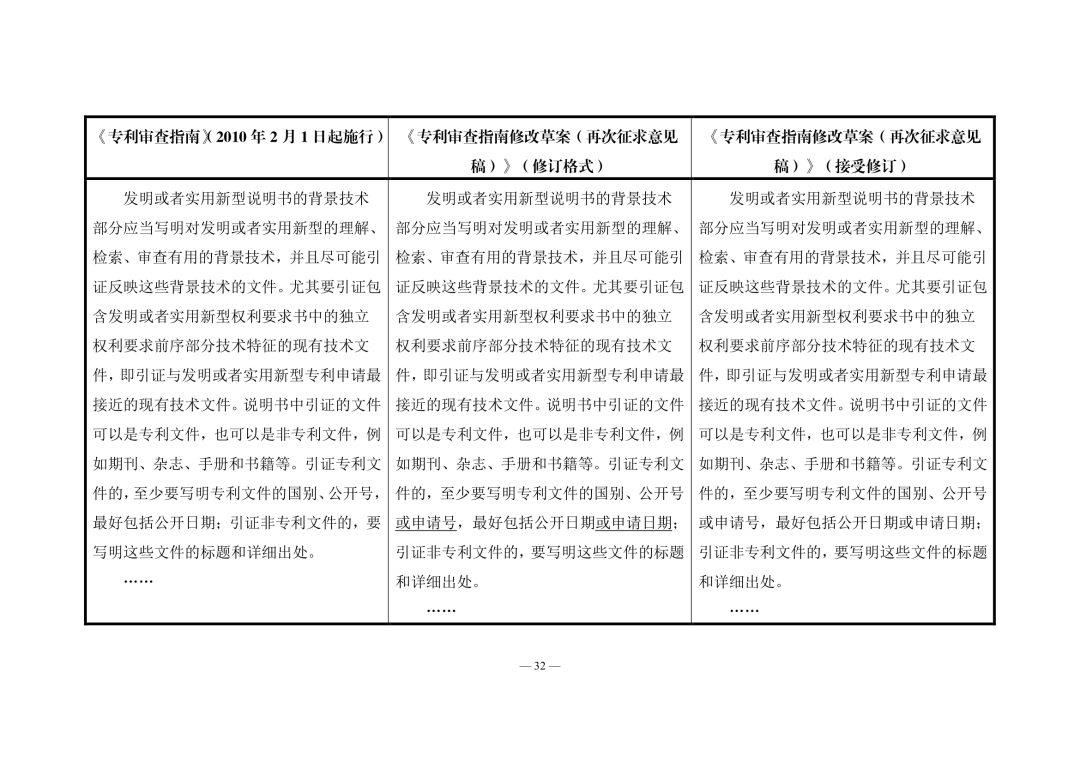 附《专利审查指南修改草案(再次征求意见稿)》修改对照表及说明